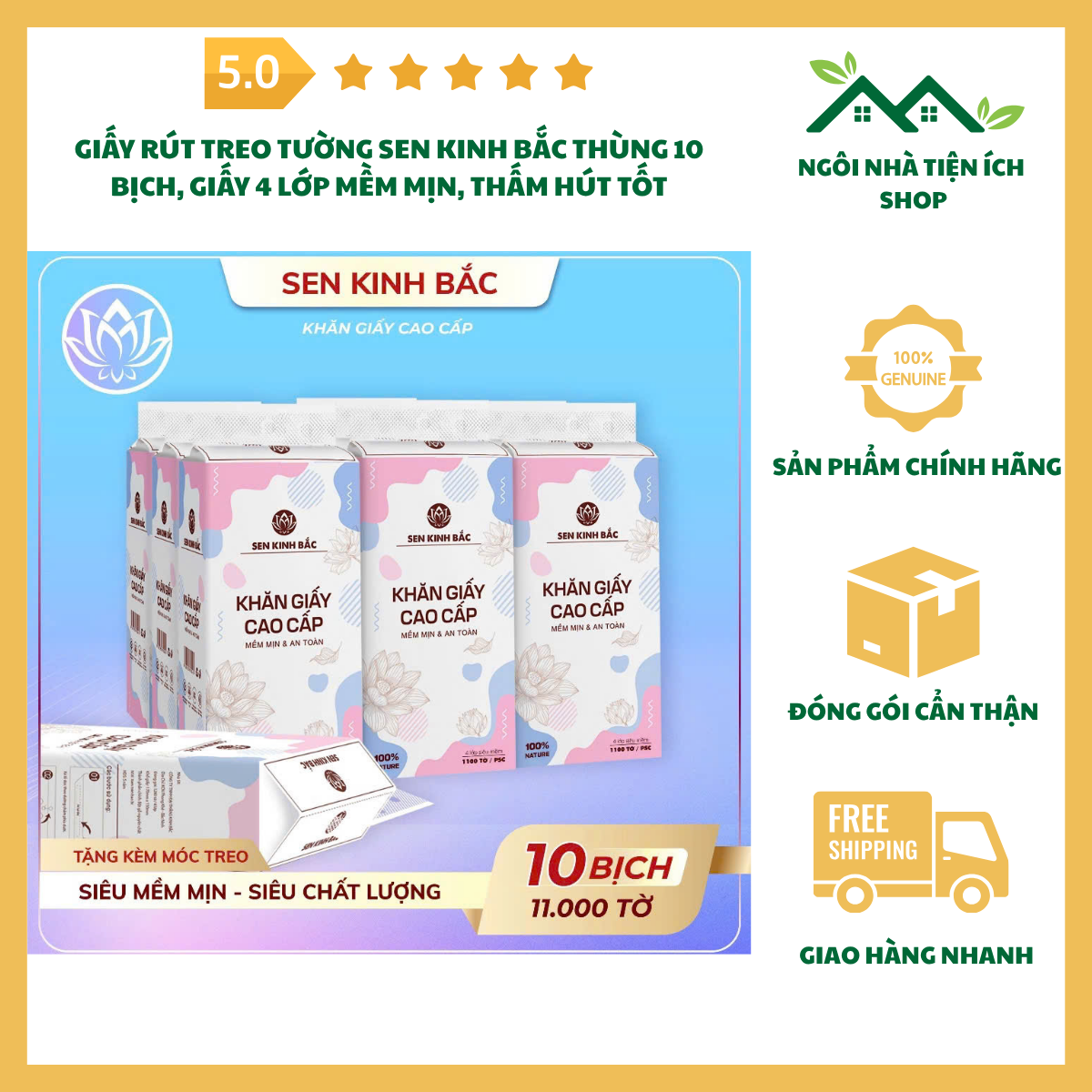 Giấy rút Sen Kinh Bắc 4 lớp – Mềm mịn, dai và thấm hút vượt trội