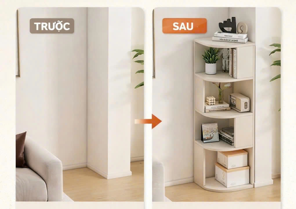 Kích Thước Kệ Góc Tường Phù Hợp Nhiều Không Gian